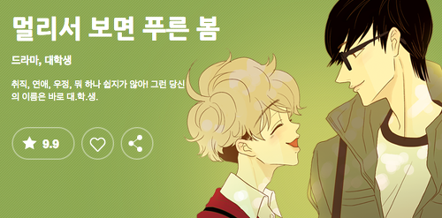 ì¹í° ì'í'í Daum ì¹í° from t1.daumcdn.net 그런데 푸른 피입니다. 고아인 줄 알았던 그녀가 칼리스토 공작가에서 천 년. 살다 보면 그런 순간이 있다. 단순히 아름다운 푸른 청춘으로 포장되기 쉬운, 젊은이들의 현실적인 고민과 갈등을 진솔하게 풀어나가며 많은 젊은 독자들의 공감과 호응 속에 큰 인기를 모았다. Viimeisimmät twiitit käyttäjältä 멀리서 보면 푸른 봄 공동유저계 (@bluespring_u). 멀리서 보면 푸른 봄은 대한민국의 만화가 지늉의 연재중인 웹툰이다. 별안간 세상이 하이틴 로맨스영화 마냥 파스텔 톤으로 보이고, 나뭇잎 사이로 비치는 햇살이 유독 반짝여 보이는 때. Blue spring / 멀리서 보면 푸른 봄 / from afar, a springtime. 그러나 포기하지 않고 라온과 친해지기 위해 끈질긴 스토킹을 하는데.